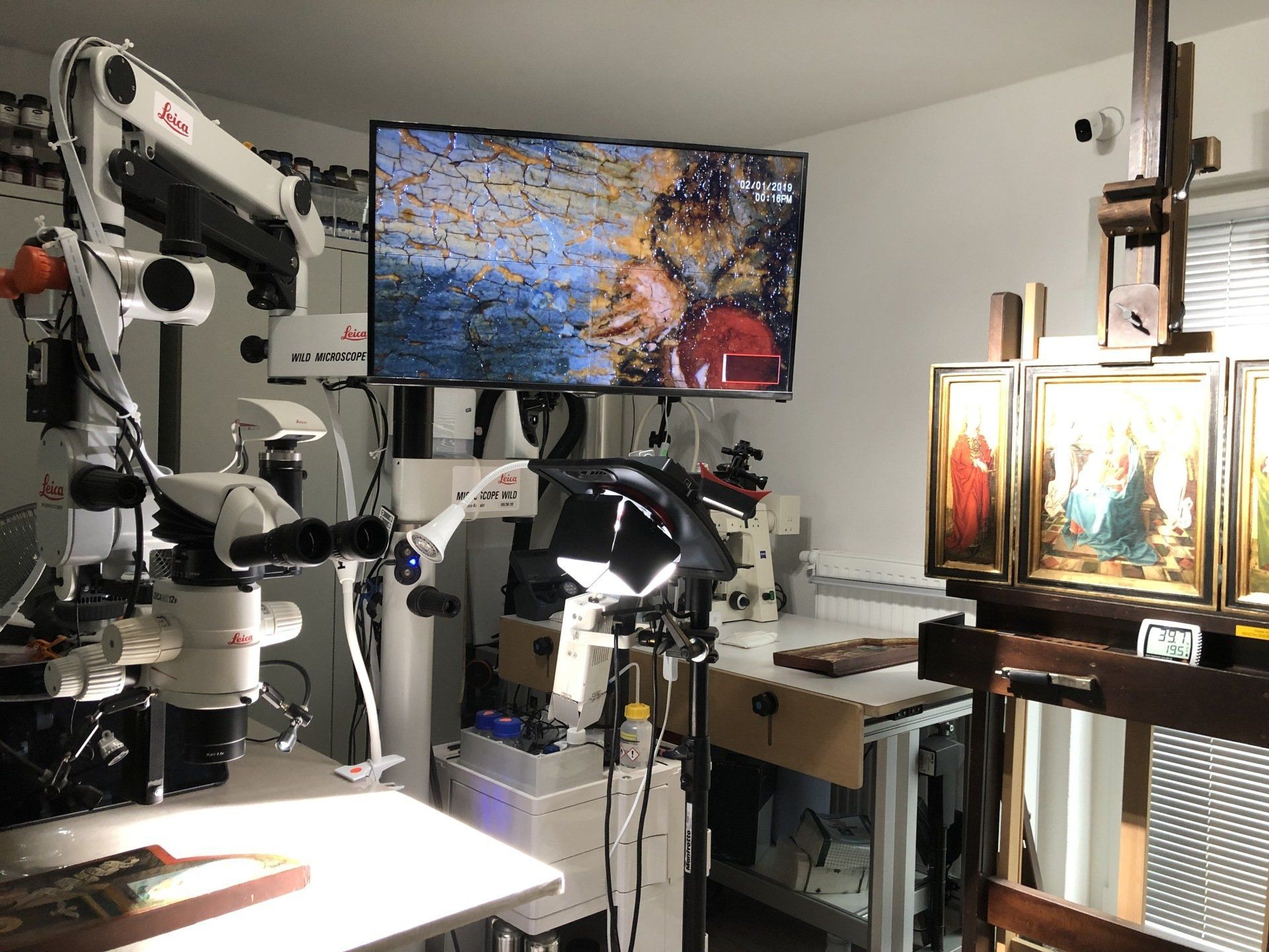 Malschichtanalysen. Diese sind an einen externen Monitor angeschlossen, wodurch Sie als Kunde die Untersuchungen in Echtzeit mitverfolgen können. Zusätzlich sind Dokumentationen in Foto und Video möglich.